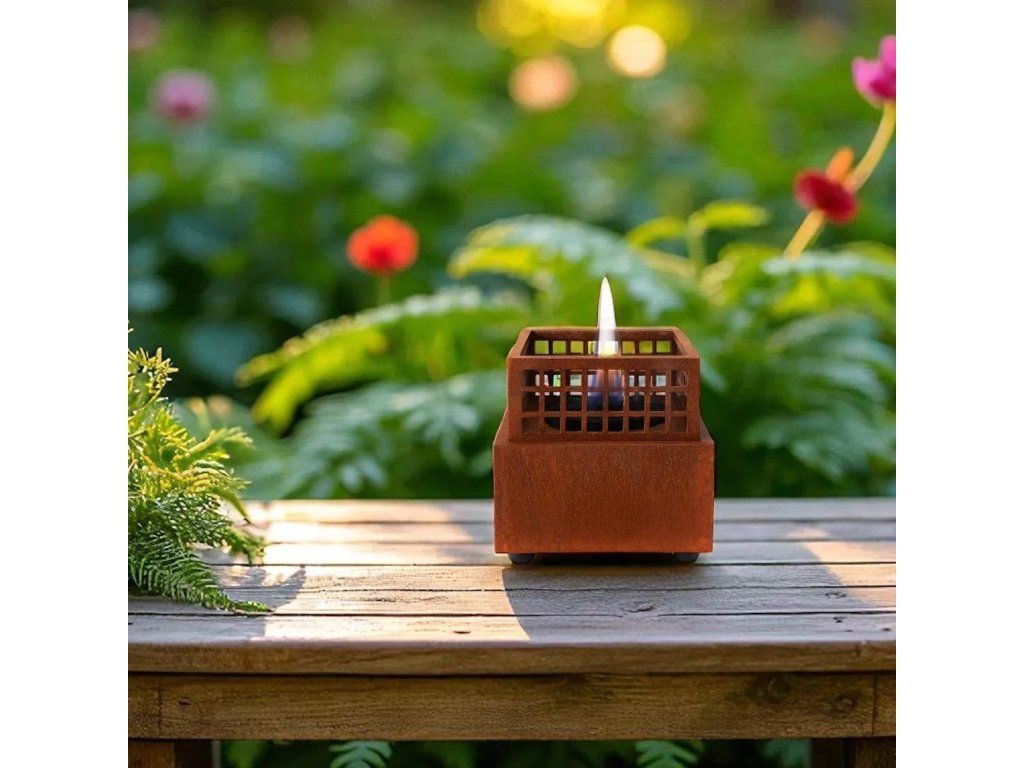 Díky svému čtvercovému designu s mřížkovou strukturou a kompaktním rozměrům je Agni 16 ideálním doplňkem na stůl - ať už v interiéru, nebo na terase. O elegantní a živý plamen se stará 180 mm plochý knot, který vykouzlí podmanivou atmosféru bez jakéhokoliv kouře, zápachu nebo sazí.