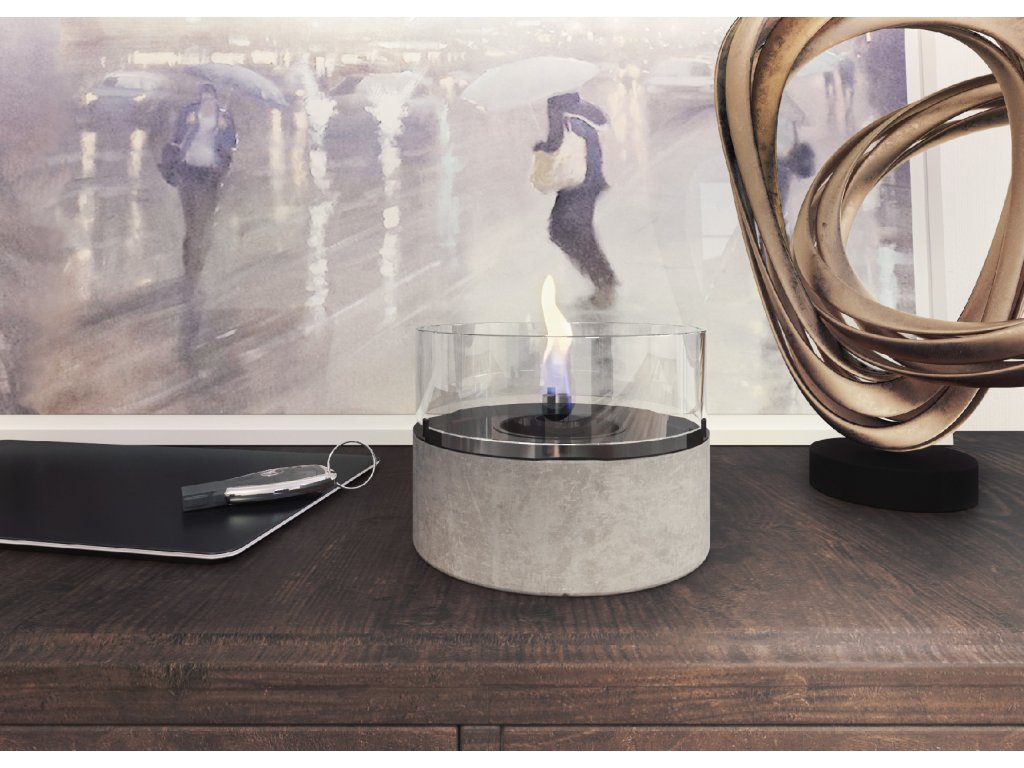 Jeho základna je vyrobena z vysoce odolného kompozitu MgO, který jí dodává moderní, lehce industriální vzhled, zatímco vrchní část z lesklého skla přidává na rafinovanosti. Z tohoto stylového těla vyrůstá trio tančících plamenů, které vytváří hypnotický efekt a okamžitě zútulní jakoukoliv místnost.