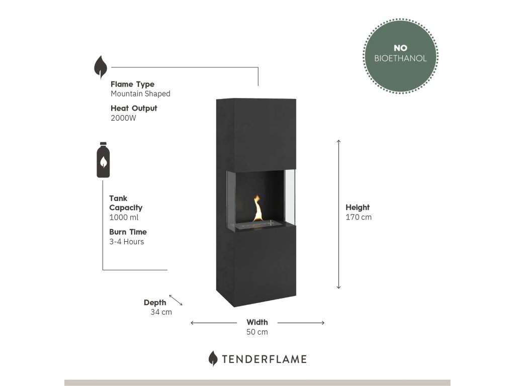 Bezpečnost je na prvním místě, proto Indie využívá unikátní palivo Tenderfuel – výrazně bezpečnější alternativu k biolihu, která zaručuje čisté hoření bez kouře, zápachu a sazí.