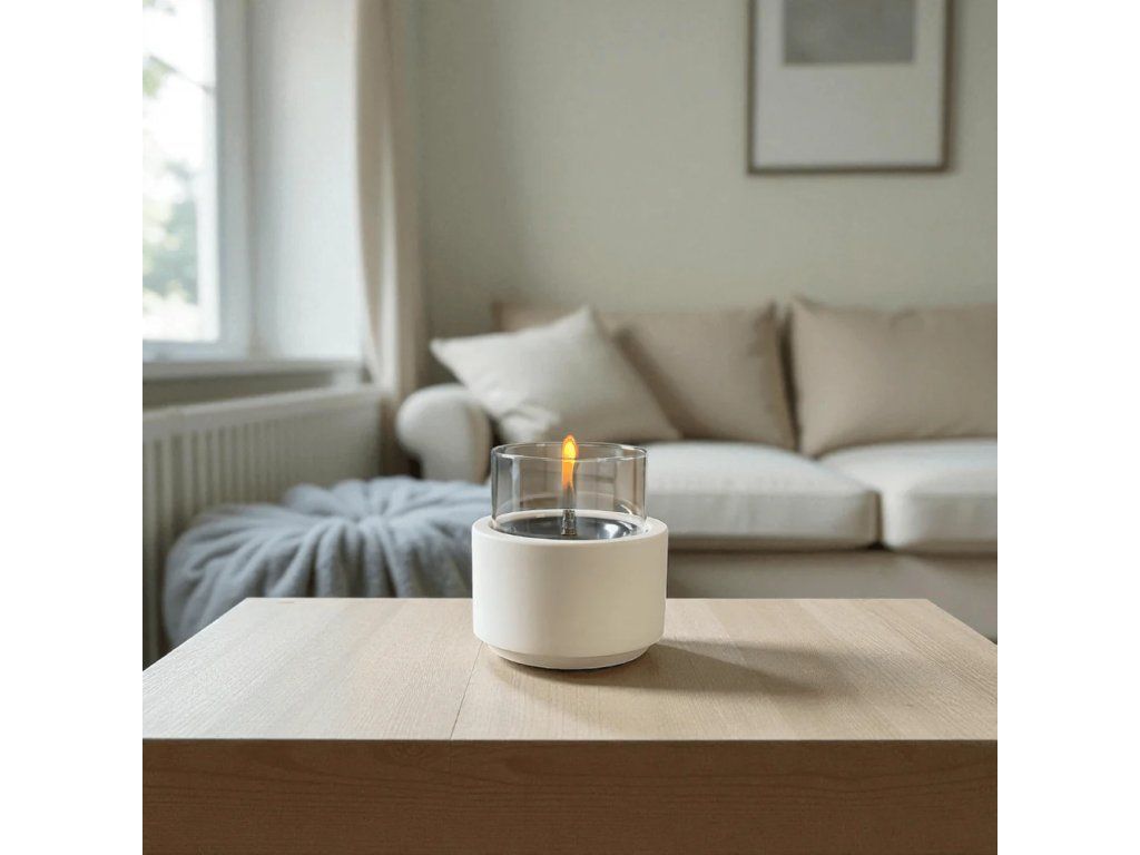 Stolní krb Lotus 12 Natural Concrete v sobě snoubí hřejivou atmosféru živého plamene s čistým, moderním designem.